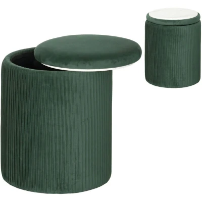HOMCOM Round Storage Ottoman with Removable Top, Dark Green