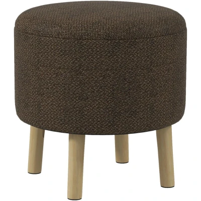 HOMCOM Round Storage Stool, Linen Fabric Upholstered Foot Stool with Removable Top, Padded Seat, Hidden Space and Wooden Legs for Living Room, Brown