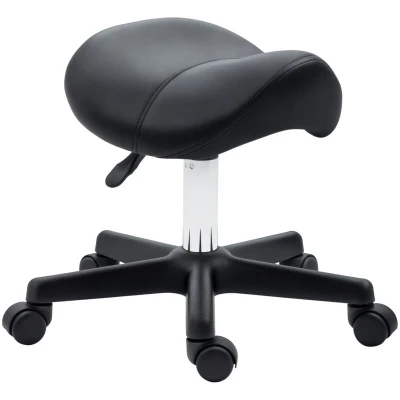 General description Ensure you have the correct posture when working, wherever you are, thanks to this HOMCOM swivel chair. Designed for comfort and support, this saddle stool is ideal for use in hair salons, beauty parlours, tattoo studios, and more. Technical specifications Colour: Black Material: PU, Sponge, Steel Overall Dimension: 48W x 47D x 45-57H cm Seat Dimension: 35W x 36D cm Seat Thickness: 10 cm Weight Capacity: 120 kg Adjustable Height: 45-57 cm Compatibility and accessories Suitable for hair salons, beauty parlours, tattoo studios, and more Comes with a set of screw accessories and rocket screwdrivers Installation Assembly required Usage Five anti-slip wheels for easy movement when seated Curved padded seat for comfort and support