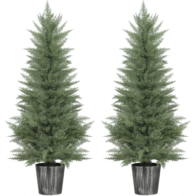 HOMCOM Set of 2 Artificial Cypress Trees with PE Leaves for Indoor Outdoor