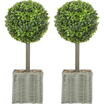 HOMCOM Set of 2 Artificial Plants, 50cm Faux Boxwood Topiary Balls, Green