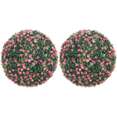 Striking greenery, all year round. This set of two HOMCOM boxwood balls come in a realistic design and finish - made from thick plastic they are super durable and can be wiped clean easily. In a set of two, you can use together for a matching look, or separately in different spots. Hang up with chains, or fix to a plant pot - the choice is yours to create a look you want. Specifications: - Colour: Pink - Material: PE - Type: Boxwood Ball - Overall Dimension: Φ40 cm - Item Label: 830-790V00PK NOTE: The product might be compressed during shipping. You can try placing it in the sun for a while or using a hair dryer to restore its original shape. Features: ● Set of two artificial boxwood tree balls. Use together or different places indoors/outdoors with UV protection ● Thick plastic is durable. Light and dark green mix for a realistic look ● Low maintenance. Outdoor plants can be used all year round ● Can be used as hanging plants, tabletop plants or potted plants ● Easy to assemble: