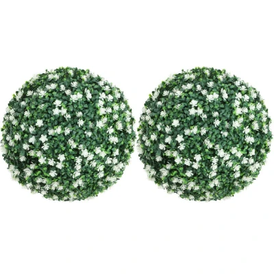 HOMCOM Set of 2 Artificial Topiary Balls Indoor Outdoor Faux Boxwood