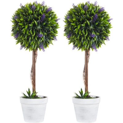 HOMCOM Set of 2 Decorative Artificial Plants Ball Trees with Lavender Flowers in Pot Fake for Home Indoor Outdoor Decor, 60cm