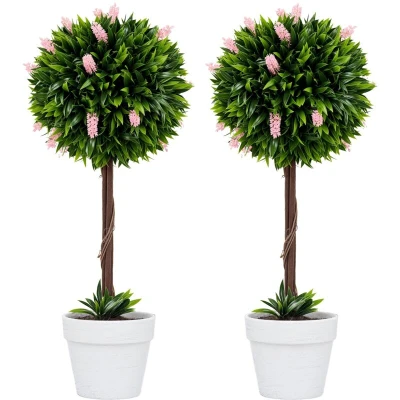 HOMCOM Set of 2 Decorative Artificial Plants Ball Trees with Lavender Flowers in Pot Fake for Home Indoor Outdoor Decor, 60cm, Pink