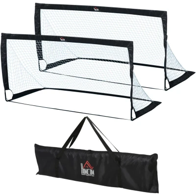 HOMCOM Set of 2 Football Goal Net 6 x 3 ft Foldable Outdoor Sport Training Teens Adults with Carrying Bag Black