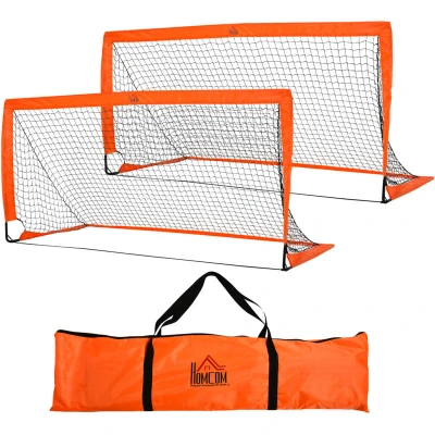 HOMCOM Set of 2 Football Goal Net 6 x 3 ft Foldable Outdoor Sport Training Teens Adults with Carrying Bag Orange