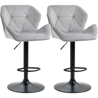 HOMCOM Set of 2 Luxurious Velvet Touch Bar Stools w/Metal Frame Footrest Base Grey