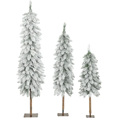 HOMCOM Set of 3 Flocked Christmas Tree, Pencil Downswept Xmas Tree