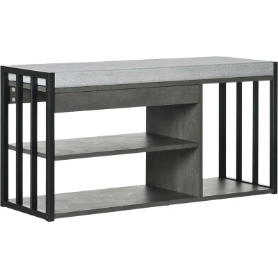 HOMCOM Shoe Bench, Modern Storage Bench with Cushion and Shelves, Rack for Entryway, Hallway, Grey