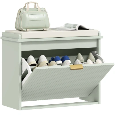 AliExpressHOMCOM Shoe Storage Bench with Cushion and Flip-Drawer 62x26x47.5cm Green