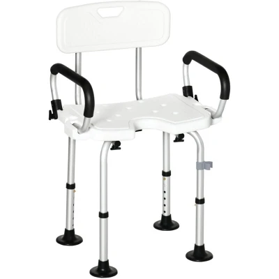 HOMCOM Shower Chair for the Elderly and Disabled, Height Adjustable Stool with Back Flipped Padded Arms, Suction Foot Pads, White