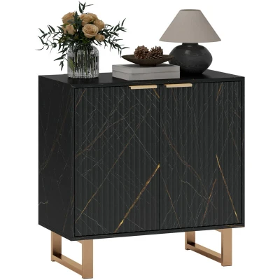 HOMCOM Sideboard Storage Cabinet, Marble Effect Buffet Cabinet with 2 Fluted Doors and Adjustable Shelves, Coffee Bar Metal Legs for Living Room, Black