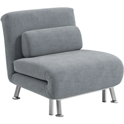 HOMCOM Single Chair Bed, 3 in 1 Convertible Sleeper with Adjustable Backrest, Pillow, for Living Room, Bedroom, Grey