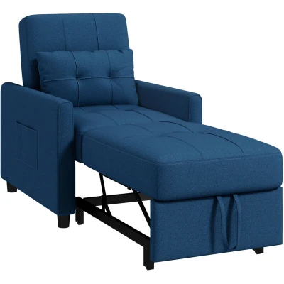 HOMCOM Single Sofa Bed, Pull Out Chair Convertible Sleeper with Adjustable Backrest, Pillow, Side Pockets for Home Office, Bedroom, Living Room, Blue