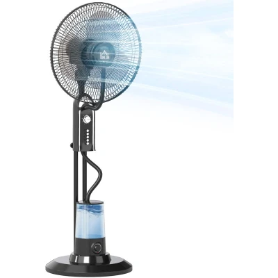 Advanced cooling technology: Utilizes ultrasonic atomization technology to quickly evaporate heat, this water spray fan quickly dissipates heat without the dryness; you can enjoy only fan, only mist, or with mist for skin-friendly Versatile settings: Features four speeds and stepless adjustable spray levels, plus three modes including normal, natural and sleep, making this fan with mist offering steady cool air, outdoor-like breezes, or a quiet night's rest Wide coverage: Enjoy a refreshing breeze throughout the room with auto 70° oscillation and a manual 10° tilt, ensuring this water mist fan efficiently circulates air throughout the living room, bedroom, home office User-friendly design: Equipped with a 0.5-7.5 hour timer and a large 3.2L water tank for up to 14.5 hours use, it also alerts you when it's time to refill; easily adjust this water fan with control panel Information: Overall dimension: 44.5L x 38.5W x 120H cm; max Atomization: 220 mL/h; assembly required; no remote control