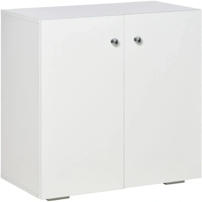 General description Keep your home organized with this stylish freestanding cabinet from HOMCOM. It can be used in any room, with two shelves to help maintain a tidy and clutter-free environment. The spacious tabletop is perfect for displaying your favorite pieces, adding a lovely decorative touch. Its all-white design complements any décor, while the particle board construction ensures easy cleaning and maintenance. This modern cabinet is both useful and fashionable, making it a great addition to your home. Technical specifications Colour: White Material: Particleboard Dimensions: 70H x 70W x 39D cm Inside cabinet dimensions: 32H x 67W x 35.5D cm Elevated base height: 2 cm Weight capacity: 50 kg Shelf weight capacity: 15 kg Item label: 838-140WT Usage Ideal for bedrooms, dining rooms, offices, and living rooms Can be used as a buffet cabinet, bookshelf, side table, and more Other information Features two shelves and a countertop for storage and display Aluminium handles for a stylish