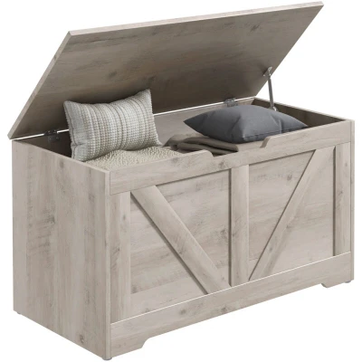 HOMCOM Storage Chest, Trunk with 2 Safety Hinges and U shaped Cut out Pull, Wooden Toy Box for Living Room, Entryway, 80 x 40 45 cm, Grey Wood Grain