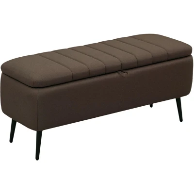 General description Style and storage come together with the HOMCOM Storage Ottoman Bench. This versatile piece, in a neutral dark brown color, easily fits into various home styles. It features a padded lid that serves as an occasional seat and offers a spacious inner storage compartment, perfect for keeping small items organized. Technical specifications Colour: Dark Brown Material: Linen-touch Fabric (100% polyester), Sponge, Steel Overall Dimensions: 102W x 40D x 44H cm Hidden Storage Size: 92W x 31D x 22H cm Lid Thickness: 4 cm Leg Height: 17 cm Weight Capacity: 150 kg Item Label: 838-272V70CW Usage Versatile piece for various uses throughout the home Under-seat storage keeps your space tidy Padded seat lid provides comfortable seating