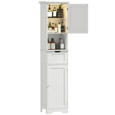 HOMCOM Tall Bathroom Cabinet, Freestanding Slim Storage Cabinet with LED Light, Adjustable Shelf, Open Compartment and Drawer, Modern Narrow Cupboard, 40 x 30 170 cm, White
