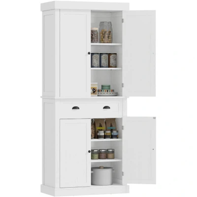 HOMCOM Traditional Colonial Freestanding Kitchen Pantry Cupboard Storage Cabinet White