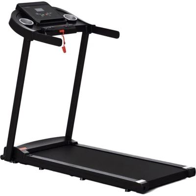 General description Want to stay active at home without leaving the door? The HOMCOM Treadmill is the perfect solution for home workouts. With a maximum speed of 12 km/h and 12 different workout modes, you can easily switch up your routine. The treadmill features an LED display that tracks your time, speed, and distance, allowing you to monitor your progress while running. Safety is prioritized with a safety key that stops the machine immediately when pulled out, preventing accidents. The treadmill is also equipped with two wheels for easy mobility. Technical specifications Colour: Black and silver tone Materials: Steel and ABS Dimensions: 114H x 133L x 60W cm Running mat dimensions: 110L x 40W cm Velocity range: 1-12 km/h Power: 500W (1.5HP) Input: 220-240V / 50Hz Weight capacity: 100 kg Other information LED screen displays time, speed, mileage, and calories burned Includes two cup holders and a phone holder Assembly required Certifications: CE-EMC, LVD, ROHS, EN20957, and BS1363
