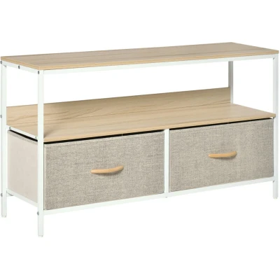 HOMCOM TV Cabinet for 47 inch TVs, Console Unit with 2 Foldable Linen Drawers, Stand Shelving Living Room, Entertainment Maple Wood Effect