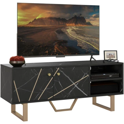The HOMCOM TV table stand is the perfect fusion of functionality and style, specifically designed for TVs up to 50 inches. Its elegant black marble pattern paired with gold tone legs allows it to seamlessly fit into any living room decor, enhancing the overall aesthetic while also serving a practical purpose.