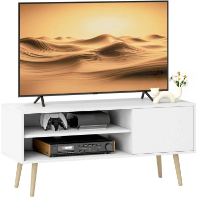 HOMCOM TV Stand Cabinet up to 55 Inches, Unit with Single Door and Open Shelves, Cable Holes for Living Room, Bedroom, White