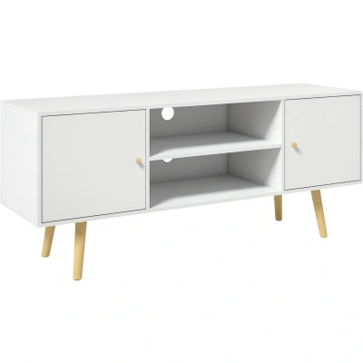 HOMCOM TV Unit Cabinet for TVs up to 55 Inches, Stand with Storage Shelves and Wood Legs Living Room, White