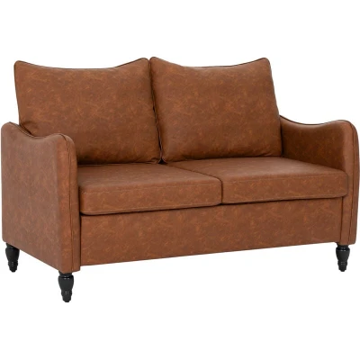 HOMCOM Two Seater Sofa, Modern Small Sofa with Solid Wood Legs, Brown