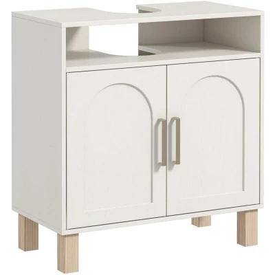 HOMCOM Under Sink Bathroom Cabinet, Freestanding Cabinet with Adjustable Shelf for Basin without Pedestal, 60 x 30 63 cm, Cream White