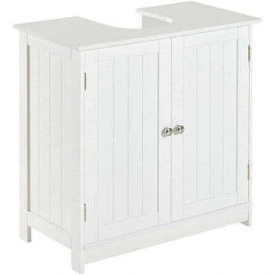 HOMCOM Under Sink Bathroom Storage Cabinet 2 Layers Vanity Unit Wooden White