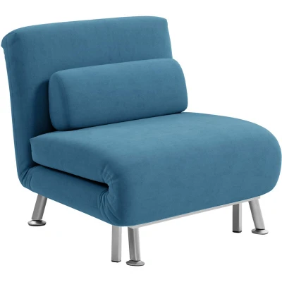 HOMCOM Velvet Single Chair Bed, 3 in 1 Convertible Sleeper with Adjustable Backrest, Pillow, for Living Room, Bedroom, Blue