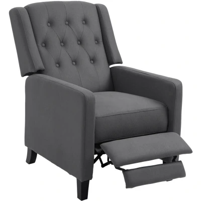 HOMCOM Wingback Push Back Recliner Armchair, Microfibre Cloth Reclining Chair with Leg Rest, Button Tufted, for Home Living Room Theater, Charcoal Grey