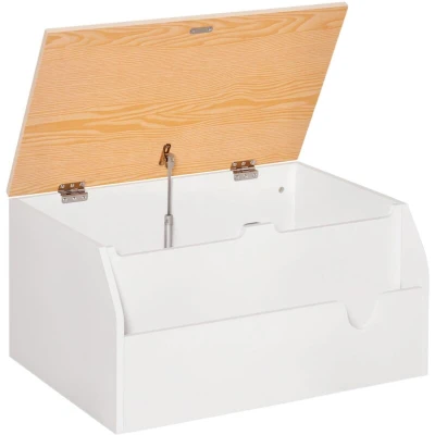 HOMCOM Wooden Kids Toy Box Children Storage Chest Organiser Book Slot Safety Hinge Playroom Furniture White