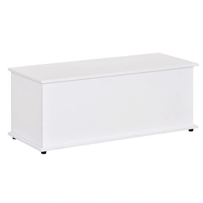 JoybuyThe HOMCOM Storage Chest Box in White features a durable wooden construction with a 113L capacity, flip-top lid, and non-slip footpads. Versatile and stylish, it serves as storage, seating, or a tabletop, supporting up to 120 kg—ideal for bedrooms, living rooms, or entryways. Assembly required.