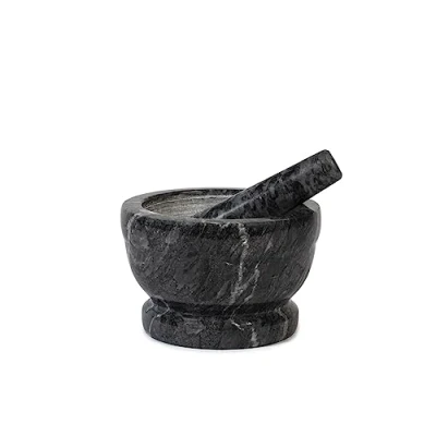 HOME 9716218 Marble Mortar with Pestle, Black, 18 cm