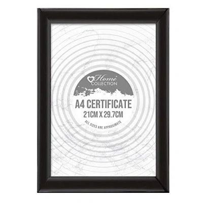 Home Collection Black A4 Certificate Photo Frame with Glass Front Panel