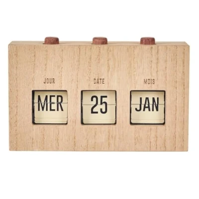 Authentic design: This flip flap deco calendar stands out for its raw wood design that brings a touch of authenticity to your interior decoration. Perfectly fits various decoration styles, from modern to vintage, adding a warm note to your living space Ease of use: With its simple and intuitive mechanism, this perpetual calendar allows you to change the date in a blink of an eye. Simply rotate the panels to display day and month, making it a decorative object at the same time functional for your daily life Decorative element: More than just a calendar, this decorative object is a real asset for your interior. Its sleek and minimalist design makes it an eye-catching accessory that can be placed on a shelf, desk or coffee table to enhance the aesthetics of yours. room Durability: Made from quality materials, this calendar is designed to last. Its sturdy wooden construction ensures prolonged use without deterioration, making it a wise choice for those looking for decorative items that are both aesthetic and durable. Versatility: This flip flap deco calendar fits all types of interiors, whether in the living room, bedroom or office. It can also serve as an original gift for decoration lovers or those who appreciate items with unique and functional design