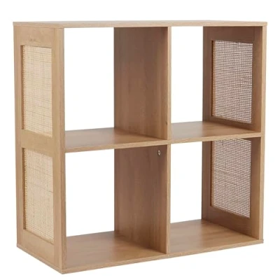 Let's change the scenery! Modernize your decor by bringing a note of pep in the living room, bedroom, entrance... Discover a practical and airy design solution with these 4 rattan windows, all to enhance and organize your home! This 4-compartment cabinet not only allows you to display your decorative elements, but also to optimize your storage space by adding storage boxes! Practical: Discover this model divided into 4 compartments to organize your space as well as to let your imagination run free, can also accommodate storage boxes Choose a trendy material! Main material: wood (particle board This item will find its place to energize your home. Dimensions: 66 x 32 x 66 cm