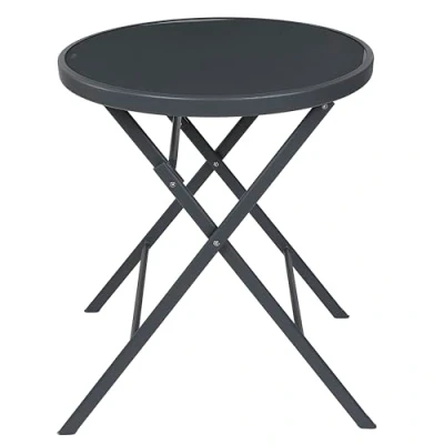 Compact and practical design: The Elba round table from Home Deco Factory is compact and practical with a diameter of 60 cm and a height of 71 cm. Its round design makes it ideal for limited outdoor spaces such as balconies, small terraces or even for use in the garden. It offers enough space for a few people, perfect for cosy moments outdoors. Sturdy construction with high-quality materials: the table is made of high-quality materials such as glass, metal and plastic. The glass top adds a touch of elegance and modernity, while the metal structure guarantees solidity and durability over time. The plastic used in some parts of the table adds to its lightness and ease of use Epoxy treatment for greater durability: The metal structure of the table "Elba" is treated with an epoxy coating that guarantees better protection against weather influences and corrosion. This treatment guarantees a long service life of the table and makes it ideal for outdoor use, even in changing weather conditions. Easy to assemble and store: the "Elba" table requires self-assembly, but thanks to its thoughtful design is quick and easy. In addition, being foldable, it can be easily stored away when not in use, saving space and keeping your outdoor space tidy Aesthetic and functional: this folding garden table combines aesthetics and functionality. The clear glass top gives a sleek, modern look, while the metal frame adds a touch of sophistication. It is perfect for sunny days and provides a pleasant place to have a coffee outside, read a book or enjoy a light meal