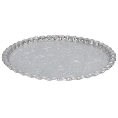 ELEGANT DESIGN - This 18.7 inch silver metal decorative tray is designed to add a touch of sophistication to your interior decoration due to its glossy finish and refined style that fits perfectly with various modern or traditional furnishings Versatility of use: ideal for serving drinks or snacks during your receptions, this tray can also be used as a stand for decorative items such as candles, flowers or figurines, thus offering multiple possibilities of arrangement EASY TO CLEAN: Made of high quality metal, this silver tray is not only aesthetic but also easy to clean, just a simple wipe with a sponge or soft cloth to keep it in perfect condition without fear of stains or streaks Oriental Inspiration: With its oriental pattern inspired design, this tray brings a warm and welcoming atmosphere to your living space, evokes memories of travel and discoveries by adding a cultural dimension to your decoration IDEAL FOR GIFTS: This decorative tray is a great gift choice for decorating enthusiasts or those who love entertaining. It is both practical and aesthetic, making it a popular gift for birthdays, weddings or housewarmings.