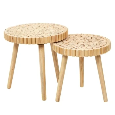 HOME DECO FACTORY Nesting Table Log X2, Brown, 40x40x40