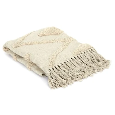 Home Deco Factory TX9134 Ethnic Diamond Relief Blanket 120 x 150 cm Ecru