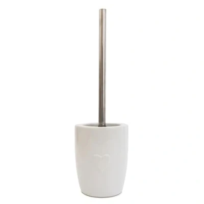 Home Deco London Ceramic Hearts Bathroom Accessory Set & Toilet Brush White Set, Equipment (Toilet Brush)