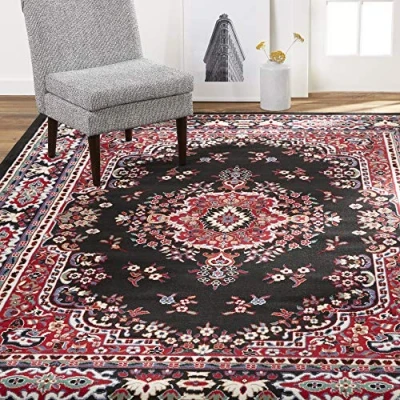 TRADITIONAL AESTHETIC: The Premium Sakarya rug collection showcases traditional patterns in classic black with red, ivory and blue accents that will complement your traditional home décor. RUG SIZES: 9 x 12 rugs, 8 x 10 rugs, 5 x 7 rugs, 4 x 5 rugs, 2 x 3 rugs, 2 x 7 runner rugs and round area rugs COZY TEXTURE & RESILIENT CONSTRUCTION: Machine woven from 100% polypropylene yarns with a soft texture that will add a cozy feel over your hardwood floors and provide comfort underfoot. SUITS ANY ROOM: This collection offers area rugs that are suitable for all indoor spaces. Living room rugs, bedroom rugs, rugs for the entryway, office rugs, dorm rugs, dining room rugs HASSLE FREE MAINTENANCE: The maintenance for this rug is simple and easy. Shake, spot clean and vacuum as need to upkeep its beauty.