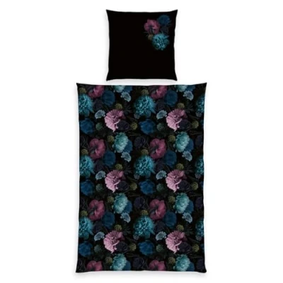 Home Edition Satin Bed Linen Flowers, Pillowcase Approx. 80 x cm, Duvet Cover 155 220 with Branded Zip, 100% Cotton/Satin