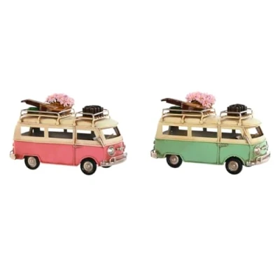 Home ESPRIT Decorative Figure Van Green Pink Vintage 17 x 8 11 cm (2 Units)
