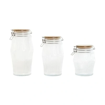 Home ESPRIT Set of 3 Transparent Silicone Bamboo Glass Jars 13.5 x 27 cm